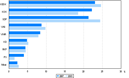 Lähde: Vaalitilastot, Eduskuntavaalit 2007. Tilastokeskus
