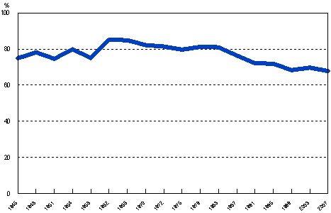 | 1972 | 81,4 | 2007 | 67,8 | 8,5 |