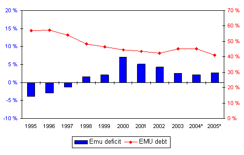 *) EMU deficit and debt 1995-2004 as reported in August 2005.