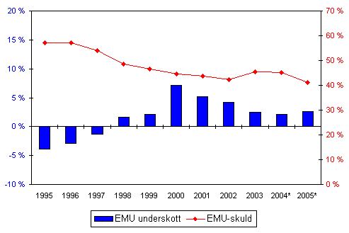 *) EMU-underskottet och -skulden 1995-2004 överensstämmer