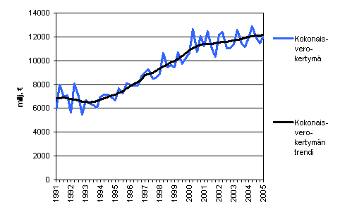 - Tulo- ja varallisuusverokertymä (D5) neljännesvuosittain (30.6.2005)