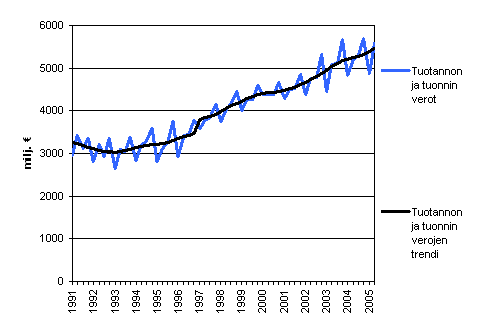 Tuotannon ja tuonnin verokertymä (D2) neljännesvuosittain