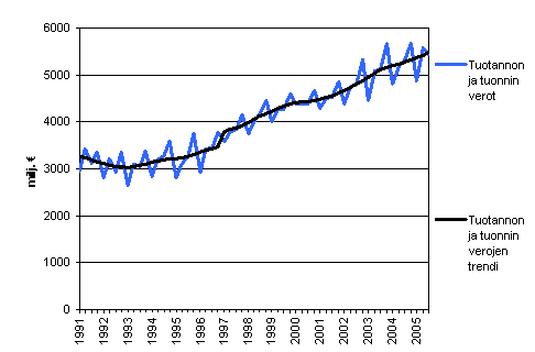 Tuotannon ja tuonnin verokertymä (D2) neljännesvuosittain