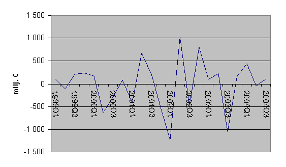 Julkisyhteisöjen suhdanneseurannassa julkisyhteisöjen tulojen ja menojen erotuksena laskettava nettoluotonanto on eräs tärkea finanssipolitiikan perusteisiin vaikuttava tekijä. Tilasto tuottaa kansantaloudentilinpidon mukaisen nettoluotonantokäsitteen. Oheisessa kuviossa on verrattu julkisyhteisöjen tulojen ja menojen kautta laskettua nettoluotonantoa rahoitustilinpidon kautta laskettuun nettoluotonantoon neljännesvuosittain.