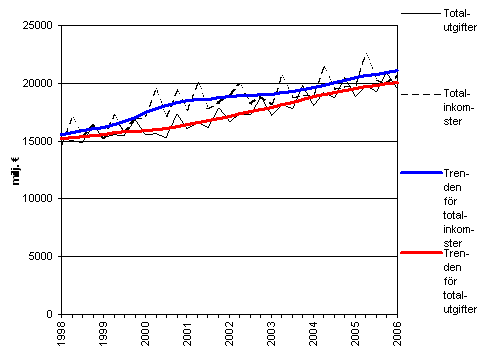 Källa: Den offentliga sektorns inkomster och utgifter, 1:a kvartalet 2006. Statistikcentralen