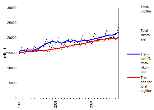 Källa: Den offentliga sektorns inkomster och utgifter, 2:a kvartalet 2006. Statistikcentralen