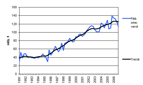 Pääomaverokertymä (D91) neljännesvuosittain