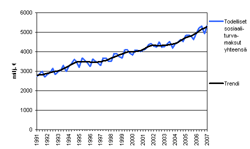 Todelliset sosiaaliturvamaksut julkisyhteisöille (D611) neljännesvuosittain