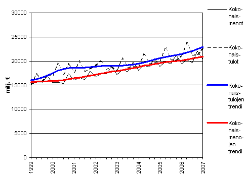 Julkisyhteisöjen kokonaistulot ja kokonaismenot 1999 - 2007