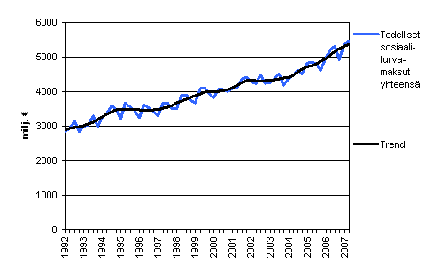 Todelliset sosiaaliturvamaksut julkisyhteisöille (D611) neljännesvuosittain