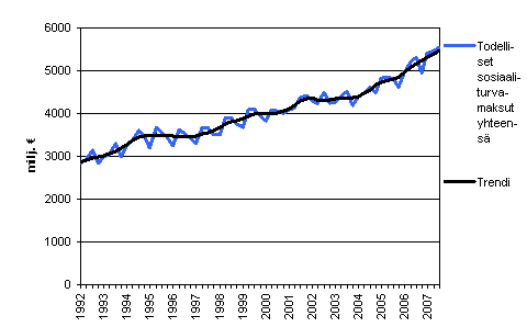 Todelliset sosiaaliturvamaksut julkisyhteisöille (D611) neljännesvuosittain