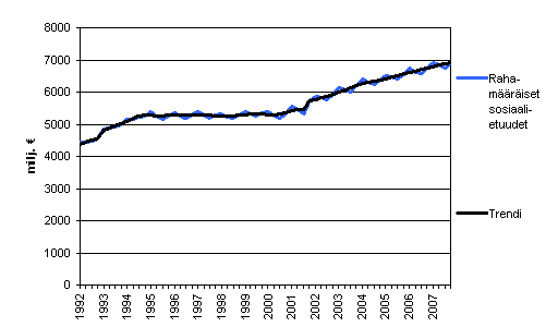 Julkisyhteisöjen maksamat rahamääräiset sosiaalietuudet (D62) neljännesvuosittain