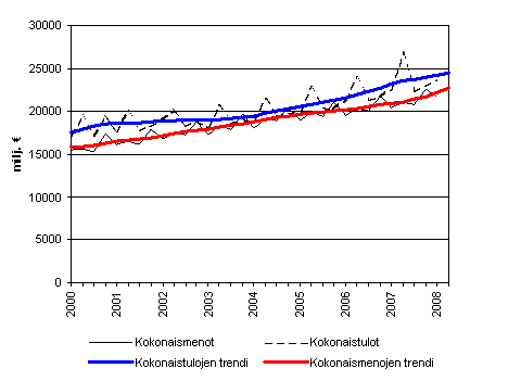 Lähde: Julkisyhteisön tulot ja menot, 2. neljännes 2008. Tilastokeskus