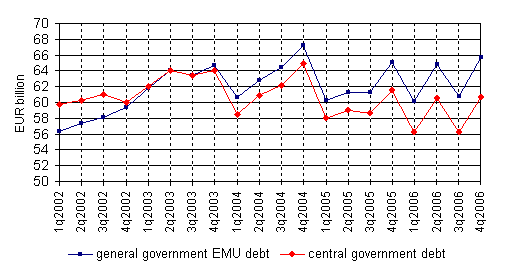 General government EMU debt higher during the last quarter of 2006 than in 2005
