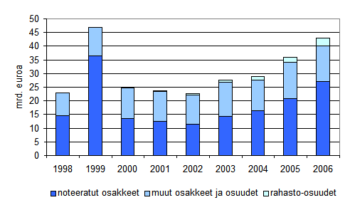 Työeläkelaitokset kasvattivat ulkomaisia arvopaperisalkkujaan 2006 viimeisellä neljänneksellä. Eniten lisääntyivät sijoitukset rahasto-osuuksiin, joihin virtasi uutta pääomaa 1,4 miljardia euroa. Valtio myi omaisuuttaan viimeisellä neljänneksellä noin 1,2 miljardin euron edestä, mutta osakkeiden yleisen kurssinousun myötä osakevarallisuuden arvo kasvoi kuitenkin 2,8 miljardia euroa edelliseen neljännekseen verrattuna.