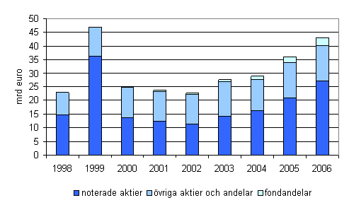 Arbetspensionsanstalterna ökade sina utländska värdepappersportföljer under det sista kvartalet år 2006. Mest ökade placeringar i fondandelar. I fondandelar strömmade nytt kapital för 1,4 miljarder euro. Under det sista kvartalet sålde staten egendom för omkring 1,2 miljarder euro, men i och med att aktiekurserna gick upp ökade dock värdet på aktietillgångarna med 2,8 miljarder euro jämfört med det föregående kvartalet.