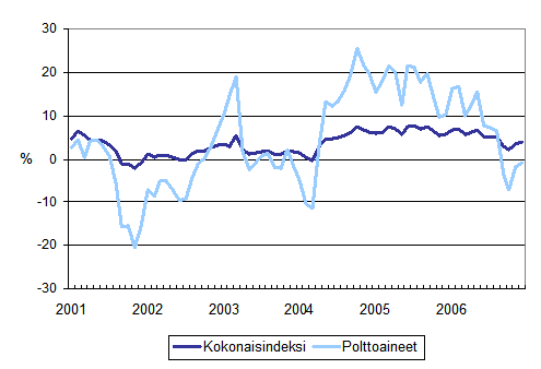 Kuorma-autoliikenteen kaikkien kustannusten ja polttoainekustannusten vuosimuutokset 1/2001 - 12/2006