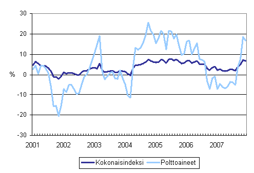 Kokonaisindeksin nousuun vaikuttivat erityisesti polttoaineiden kallistuminen, palkkojen korotukset ja korkokustannusten kasvu.