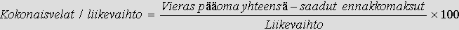 Liiketoiminnan laajuutta kuvaavat tunnusluvut
