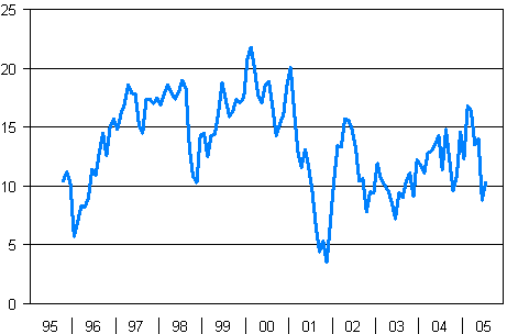 Consumer confidence indicator 10/1995-7/2005