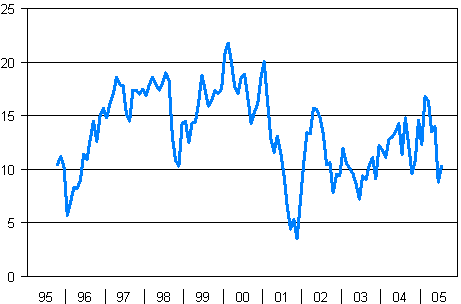 Konsumenternas förtroendeindikator 10/1995-7/2005
