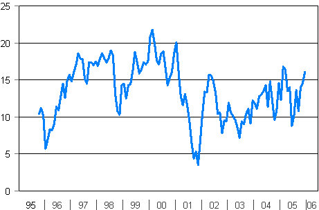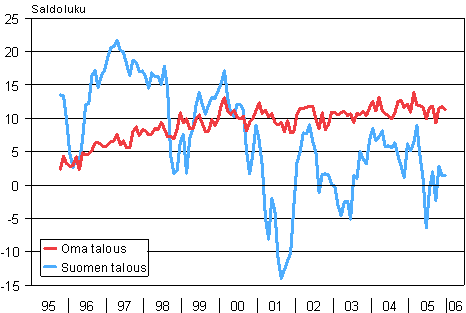 | Joulukuu 2005 saldoluku | Marraskuu 2005 saldoluku | Joulukuu 2004 saldoluku | Keskiarvo 10/95-12/05 | |||||