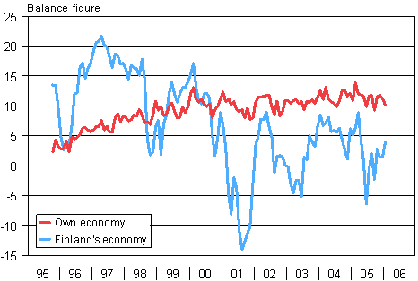 Consumers' expectations concerning their own and Finland's economy in 12 months' time 10/1995-1/2006