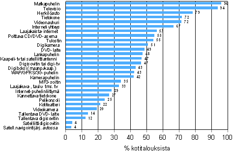 Eri laitteiden ja yhteyksien yleisyys kotitalouksissa toukokuussa 2006