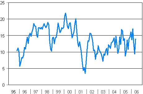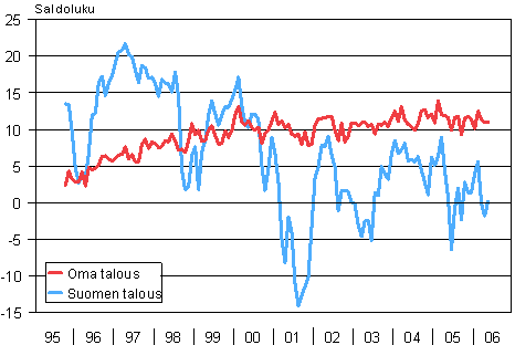 | Toukokuu 2006 saldoluku | Huhtikuu 2006 saldoluku | Toukokuu 2005 saldoluku | Keskiarvo 10/95-5/06 | |||||