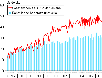 Kuluttajien arviot kotitaloutensa säästämismahdollisuuksista seuraavan 12 kk aikana ja rahatilanteesta haastatteluhetkellä 10/1995-9/2006