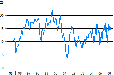 Consumers' expectations concerning their own and Finland's economy in 12 months' time 10/1995-9/2006