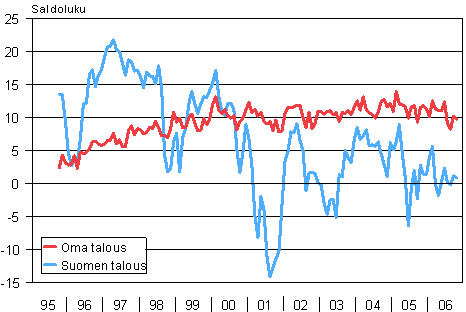 | Lokakuu 2006 saldoluku | Syyskuu 2006 saldoluku | Lokakuu 2005 saldoluku | Keskiarvo 10/95-10/06 | |||||