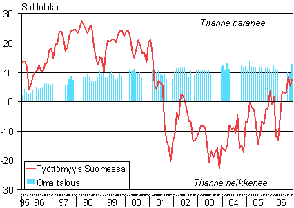 A1 Kuluttajien odotukset työttömyydestä Suomessa ja omasta taloudestaan vuoden kuluttua 10/1995-11/2006