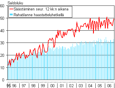 A2 Kuluttajien arviot kotitaloutensa säästämismahdollisuuksista seuraavan 12 kk aikana ja rahatilanteesta haastatteluhetkellä 10/1995-12/2006