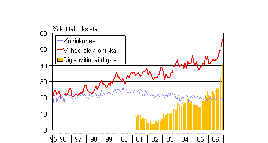 A3 Kotitalouksien aikomukset käyttää rahaa kodintekniikan hankintaan seuraavan puolen vuoden aikana 10/1995-12/2006