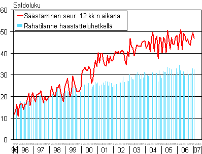A2 Kuluttajien arviot kotitaloutensa säästämismahdollisuuksista seuraavan 12 kk aikana ja rahatilanteesta haastatteluhetkellä 10/1995-01/2007