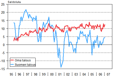 | Tammikuu 2007 saldoluku | Joulukuu 2006 saldoluku | Tammikuu 2006 saldoluku | Keskiarvo 10/95-1/07 | |
