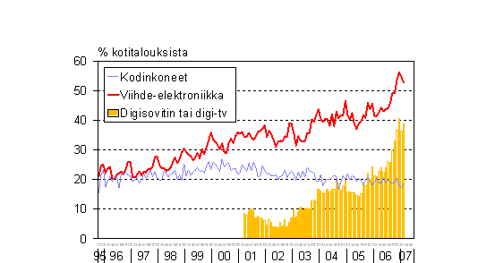 A3 Kotitalouksien aikomukset käyttää rahaa kodintekniikan hankintaan seuraavan puolen vuoden aikana 10/1995-02/2007