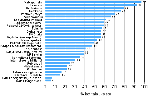 C1 Eri laitteiden ja yhteyksien yleisyys kotitalouksissa helmikuussa 2007