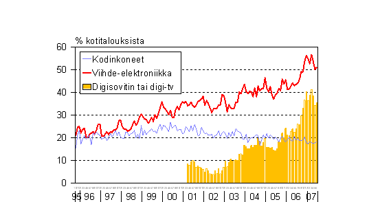 A3 Kotitalouksien aikomukset käyttää rahaa kodintekniikan hankintaan seuraavan puolen vuoden aikana 10/1995-06/2007