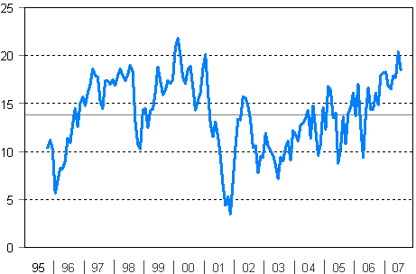 Kuluttajien luottamusindikaattori 10/1995-7/2007