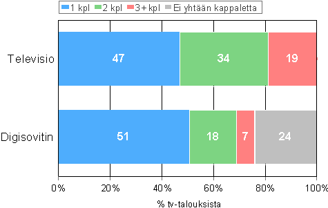 C10 Tv-talouksien jakautuminen television ja digisovittimen lukumäärän mukaan, elokuu 2007