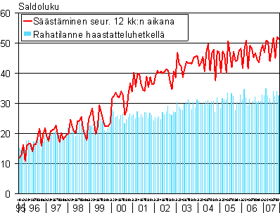 A2 Kuluttajien arviot kotitaloutensa säästämismahdollisuuksista seuraavan 12 kk aikana ja rahatilanteesta haastatteluhetkellä 10/1995 - 9/2007