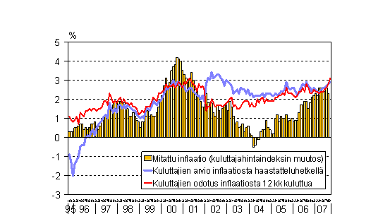 A7 Kuluttajien inflaationäkemykset ja mitattu inflaatio 10/1995 - 9/2007