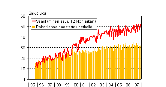 A2 Kuluttajien arviot kotitaloutensa säästämismahdollisuuksista seuraavan 12 kk aikana ja rahatilanteesta haastatteluhetkellä 10/1995 - 11/2007