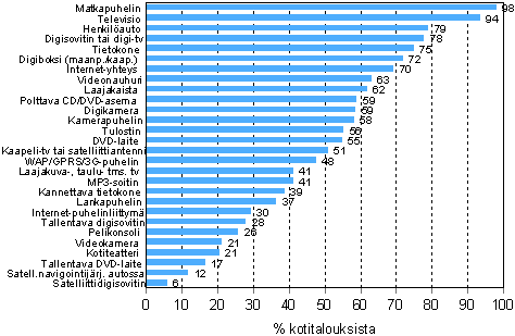 C1 Eri laitteiden ja yhteyksien yleisyys kotitalouksissa marraskuussa 2007