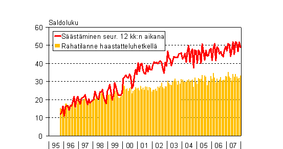 A2 Kuluttajien arviot kotitaloutensa säästämismahdollisuuksista seuraavan 12 kk aikana ja rahatilanteesta haastatteluhetkellä 10/1995 - 12/2007