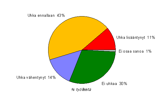 A6 Työllisten arvio työttömyyden uhan muutoksesta omalla kohdallaan viimeisten 12 kuukauden aikana, joulukuu 2007