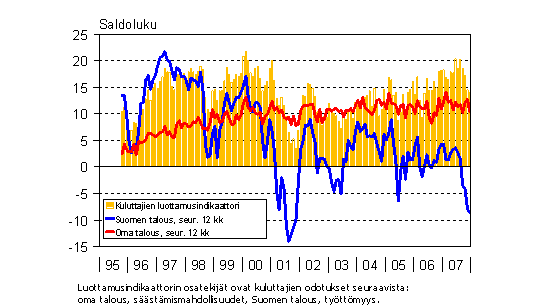 A0 Kuluttajien odotukset taloudesta ja kuluttajien luottamusindikaattori 10/1995 - 12/2007