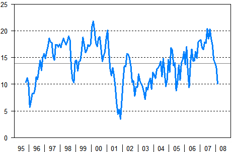 Konsumenternas förtroendeindikator 10/1995-2/2008